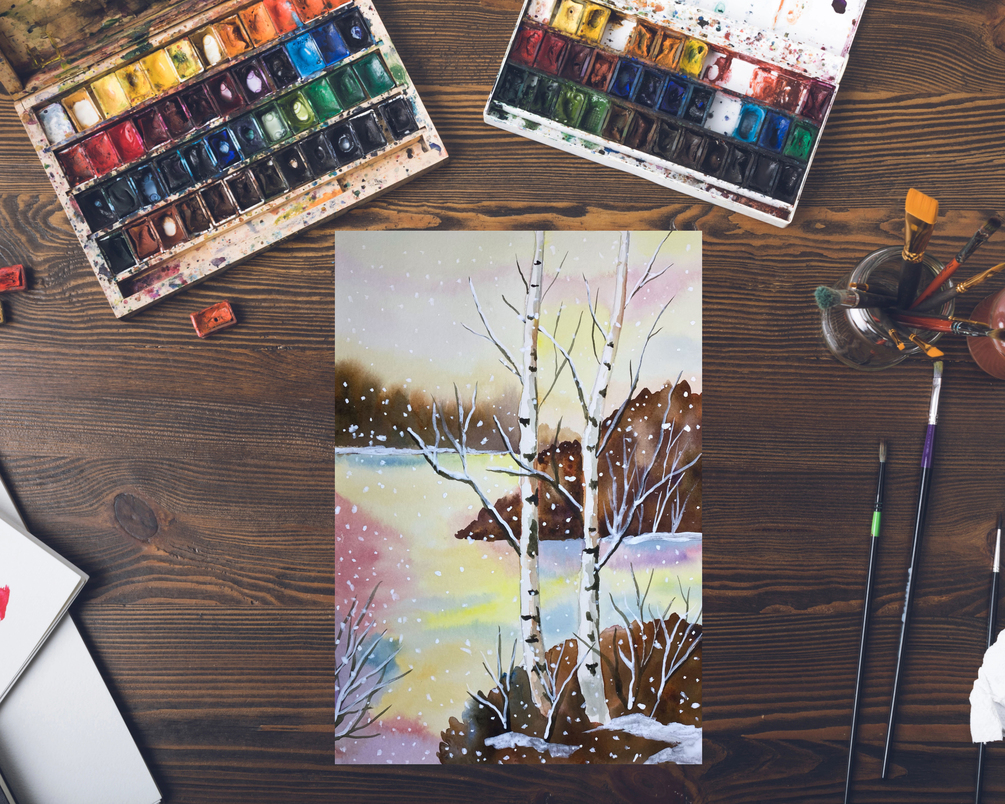 Landscape "Winter Birch Trees" Watercolor Class: Learn To Watercolor Paint; Step by Step Painting Tutorial